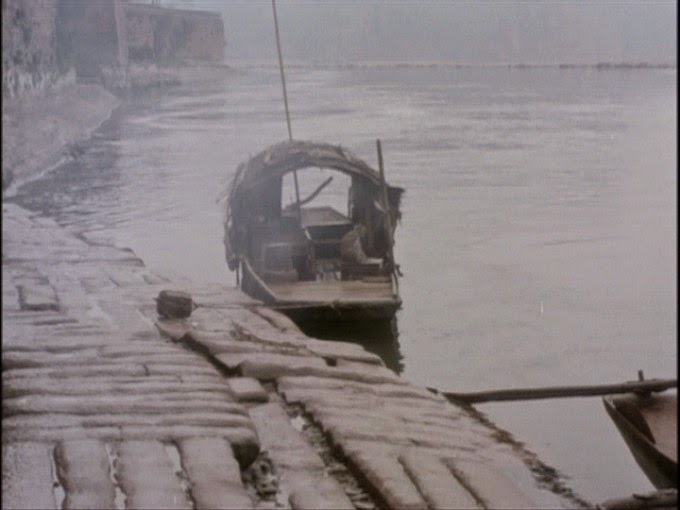 The King of Masks is probably not old enough to be your movie, but the little girl and old man in it do live on a boat docked to a city sidewalk — and I think they at least have to fish for their own subsistence. I recommend at least checking it out. Cheers!